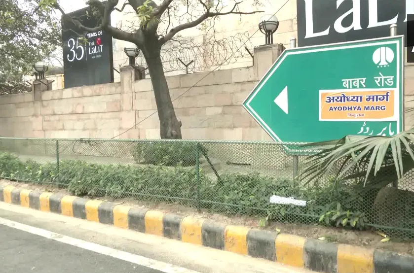 बाबर रोड पर अयोध्या मार्ग का पोस्टर लगाया