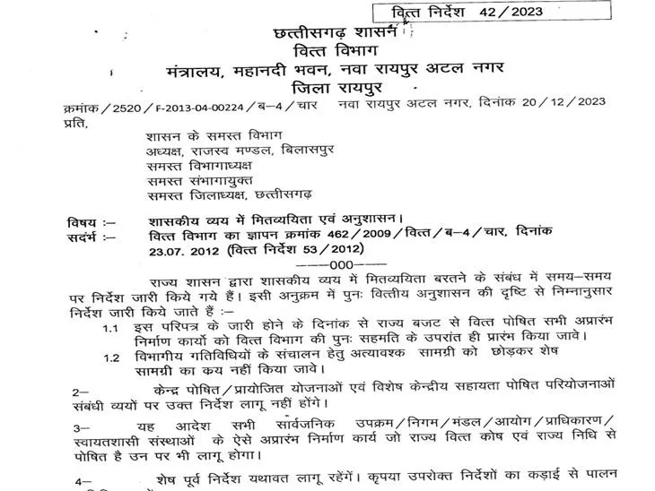 ये आदेश तमाम विभागों के प्रमुख, संभाग आयुक्त और कलेक्टर को भेजा गया है। इसमें खर्च में कमी की बात कही गई है।