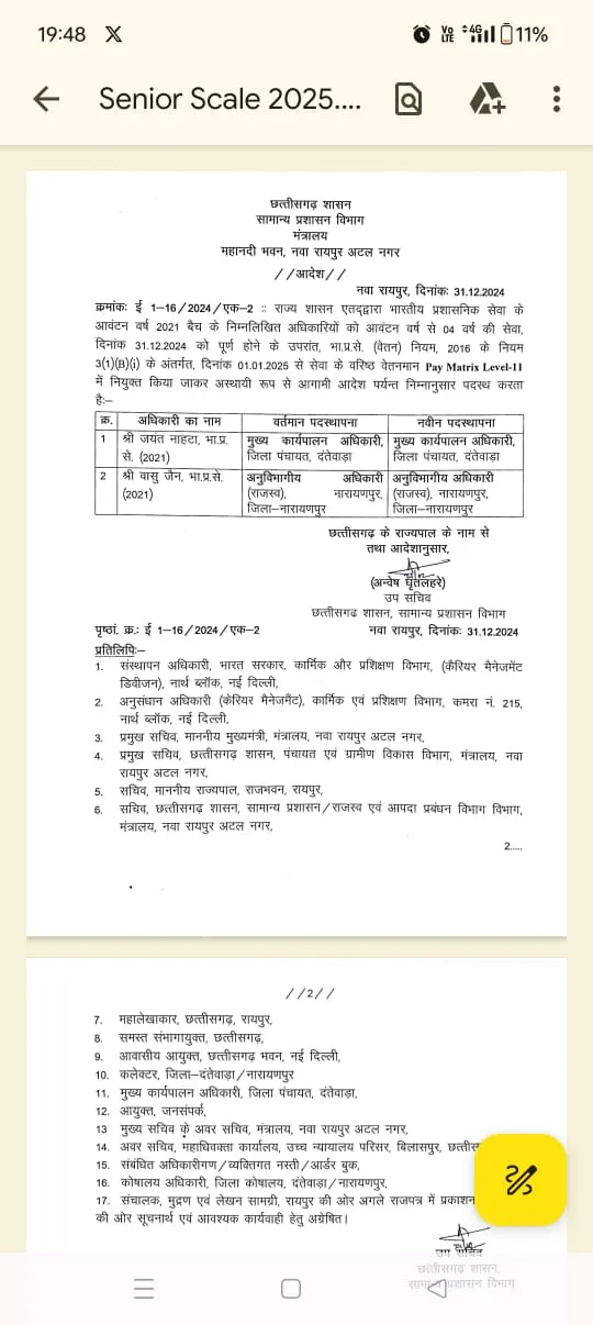 यह भी पढ़ें: छत्तीसगढ़ के इस विभाग में थोक में तबादले: नए साल से पहले मिला तोहफा, ट्रांसफर और प्रमोशन का आदेश जारी