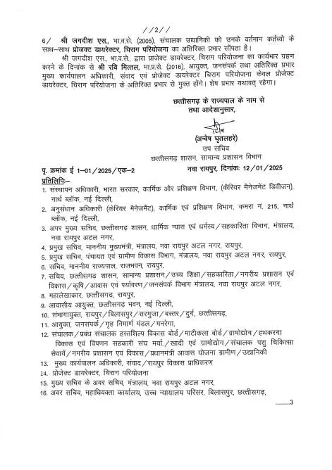 CG IAS Transfer News: छत्तीसगढ़ सरकार ने रविवार को एक महत्वपूर्ण प्रशासनिक बदलाव किया और कई आईएएस अधिकारियों को अतिरिक्त जिम्मेदारियां दी हैं। सामान्य प्रशासन विभाग द्वारा जारी आदेश में कुल छह अधिकारियों को प्रभावित किया गया है। इनमें अपर मुख्य सचिव सुब्रत साहू, जय प्रकाश मौर्य, रिमीजियस एक्का, रजत बंसल, कुंदन कुमार और जगदीश एस शामिल हैं।