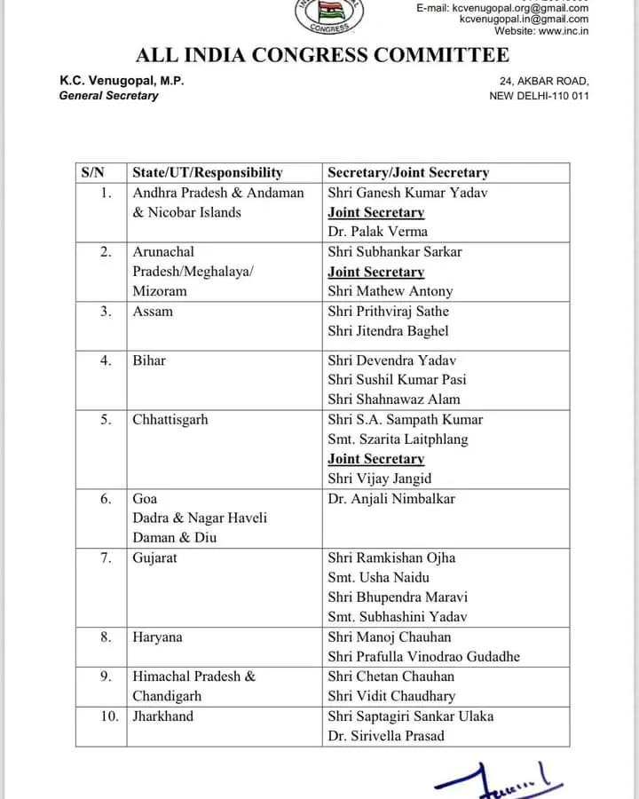 Chhattisgarh Congress: कांग्रेस पार्टी ने अपने प्रदेशों के पदाधिकारियों में बड़े पैमाने पर फेरबदल किया है। इस बदलाव के तहत एसए संपत कुमार और जारिता लैटफलांग को छत्तीसगढ़ का प्रभारी सचिव नियुक्त किया गया है। जबकि सप्तगिरि उल्का और चंदन यादव को इस पद से हटा दिया गया है। इसके साथ ही विजय जांगिड़ को छत्तीसगढ़ कांग्रेस का संयुक्त सचिव बनाया गया है। यह बदलाव पार्टी के संगठनात्मक ढांचे को मजबूत करने के लिए किए गए हैं।