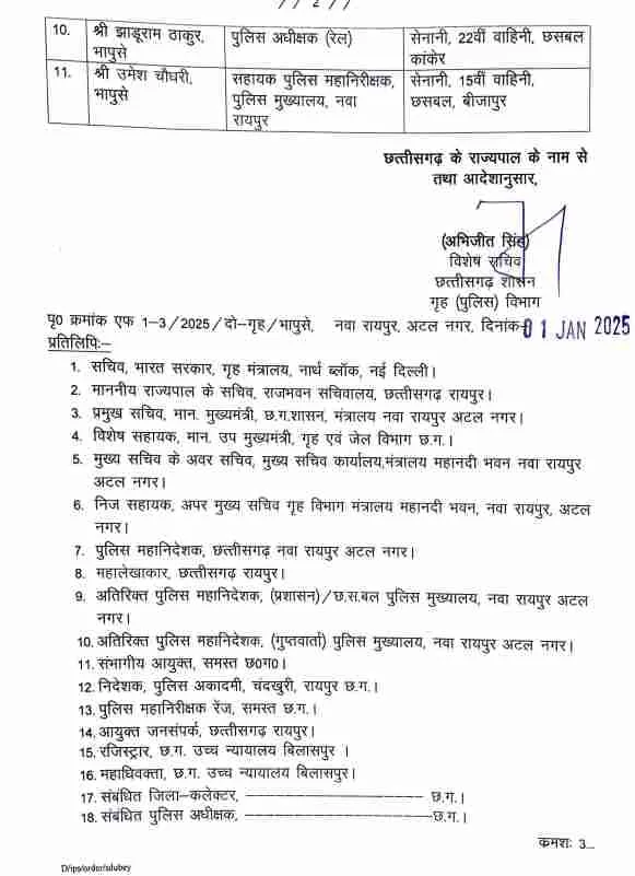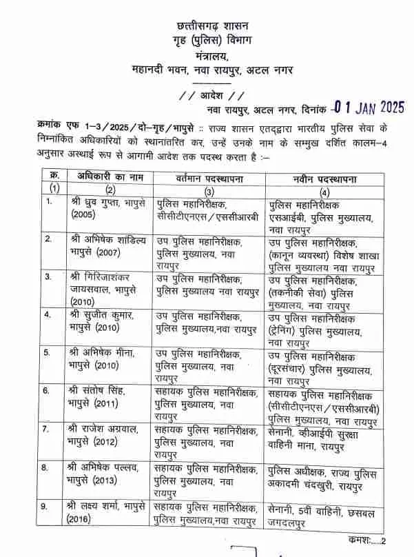- अभिषेक पल्लव – SP, राज्य पुलिस अकादमी, चंदखुरी