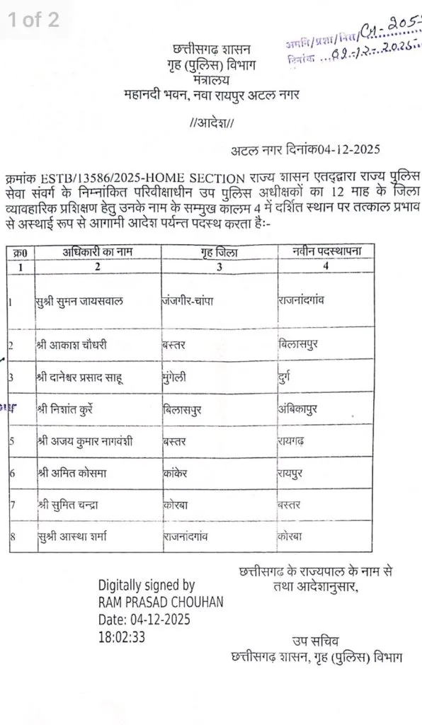 CG Trainee DSP Posting: रायपुर में 8 ट्रेनी डीएसपी को मिली पहली पोस्टिंग, गृह विभाग ने जारी किया आदेश, देखें किसे कहां मिली नियुक्ति?