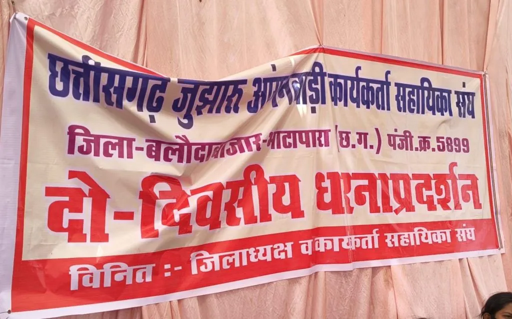 छत्तीसगढ़ में आंगनबाड़ी कार्यकर्ताओं का दो दिवसीय धरना: नियमितीकरण और वेतन वृद्धि की मांग, साड़ी खरीदी में भ्रष्टाचार के आरोप