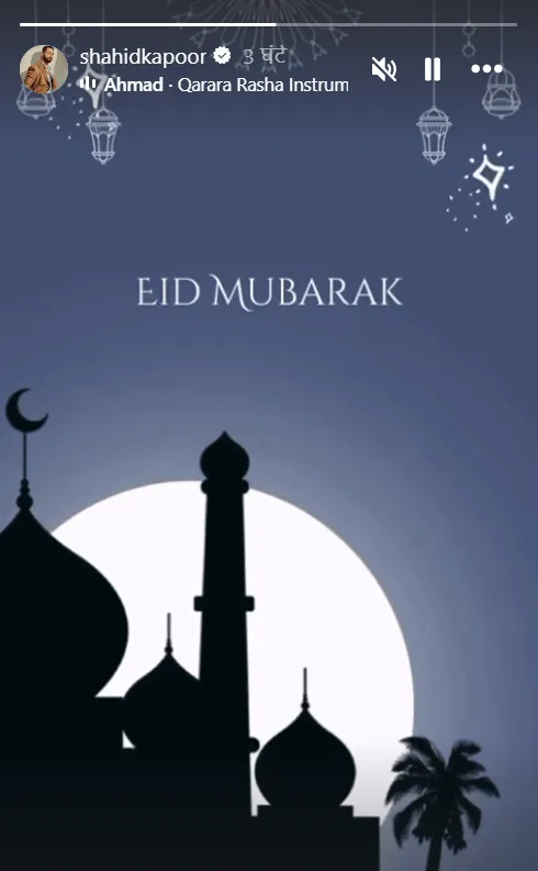 बॉलीवुड के चॉकोलेटी बॉय शाहिद कपूर ने भी अपनी इंस्टाग्राम स्टोरी पर ईद की बधाई देते हुए पोस्ट साझा की है। साथ ही मशहूर फिल्म निर्माता करण जौहर, अभिनेता अर्जुन कपूर, अनिल कपूर, शिल्पा शेट्टी ने भी ईद पर देशवाशियों को मुबारकबाद दी है।