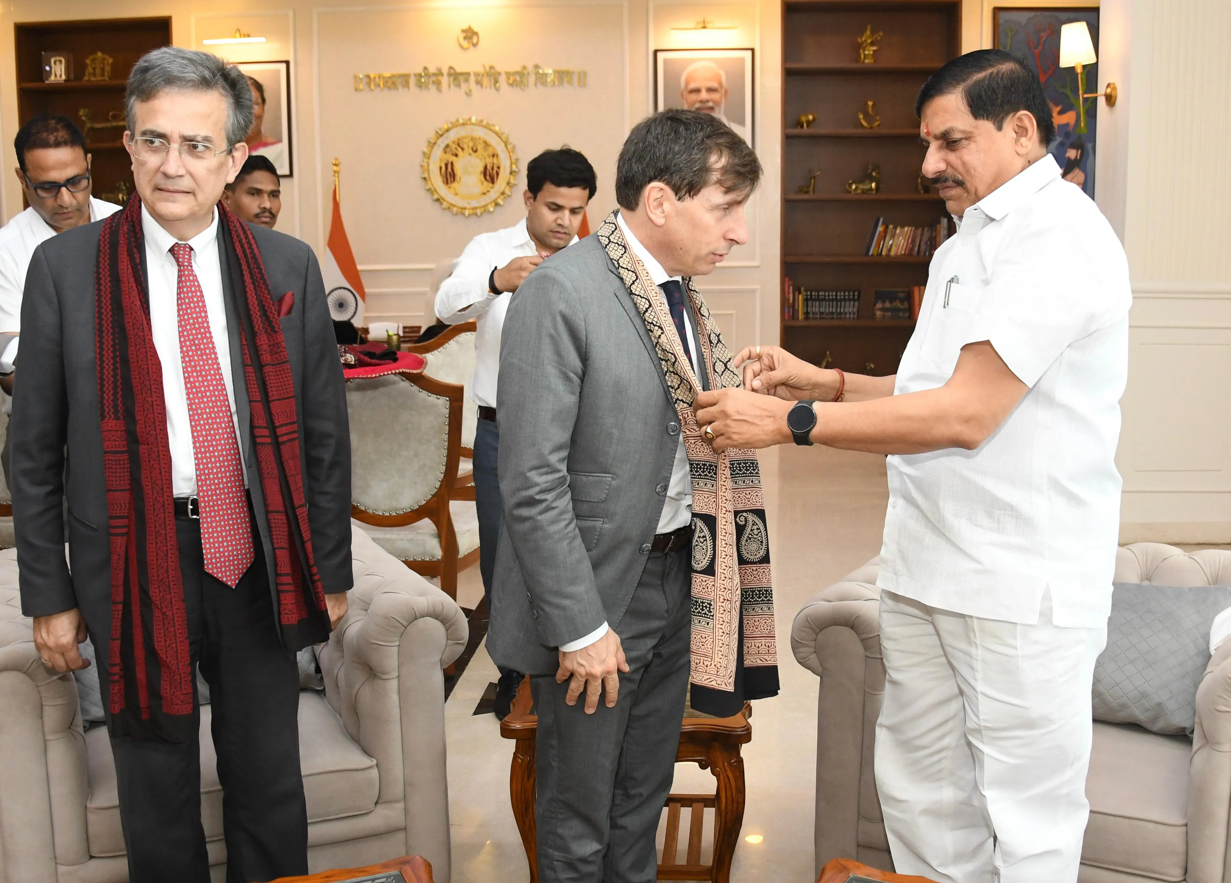 मुख्यमंत्री डॉ. मोहन यादव ने कहा कि प्रधानमंत्री नरेंद्र मोदी के नेतृत्व में भारत-फ्रांस के संबंधों में नई ऊर्जा आई है। मध्य प्रदेश अब इस सहयोग को और आगे बढ़ाने के लिए तैयार है। प्रदेश फ्रांस के साथ सांस्कृतिक संबंधों के साथ व्यापारिक संबंधों के लिए भी तत्पर है। उन्होंने अपनी आगामी फ्रांस यात्रा का जिक्र करते हुए व्यापार, उद्योग और कला में सहयोग के नए रास्ते खोलने की बात कही। उनकी आगामी माह फ्रांस यात्रा प्रस्तावित है।