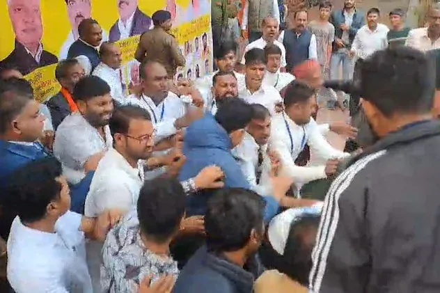 Jabalpur Manas Bhavan Clash viral video: जबलपुर में रविवार को आयोजित पिछड़ा वर्ग एवं अनुसूचित जाति-जनजाति सम्मेलन उस समय विवादों में घिर गया, जब अचानक कुछ युवक कार्यक्रम में घुस आए। इसके बाद इतनी अफरा-तफरी मची कि भीड़ ने दो युवकों को पकड़कर जमकर पीटा। बाद में पुलिस ने दोनों युवकों को थाने ले जाकर पूछताछ शुरू की। दोनों विश्व हिंदू परिषद के कार्यकर्ता बताए जा रहे हैं। घटना को लेकर कांग्रेस और VHP आमने-सामने आ गए हैं। मारपीट का वीडियो भी सोशल मीडिया पर वायरल हुआ है। पूरी घटना को लेकर अब राजनीतिक और सामाजिक संगठनों के बीच आरोप-प्रत्यारोप तेज हो गए हैं।