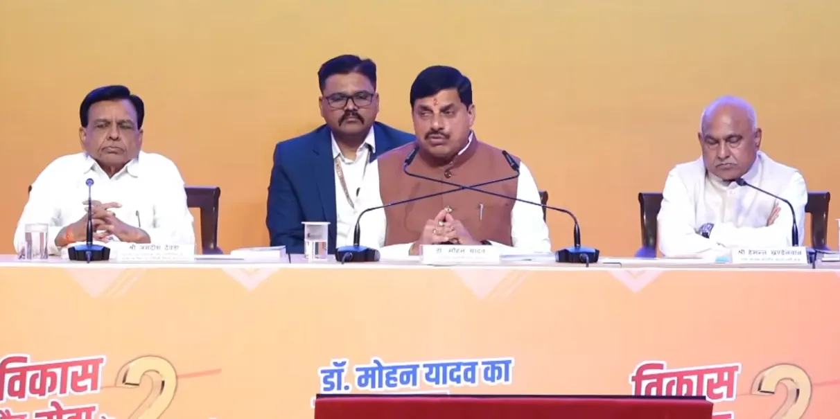 mohan sarkar ke do saal: मोहन सरकार के दो साल पूरे होने पर शुक्रवार, 12 दिसंबर, 2025 को भोपाल स्थित कन्वेंशन सेंटर में सीएम मोहन यादव की प्रेस क्रॉफेंस आयोजित की गई।