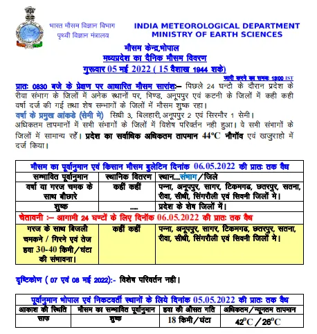 अगले 24 घंटे में पन्ना, अनूपपुर, सागर, टीकमगढ़, छतरपुर, सतना, रीवा, सीधी, सिंगरौली और सिवनी में गरज-चमक के साथ बारिश हो सकती है। यहां 30 से 40 किमी प्रतिघंटे की रफ्तार से हवा भी चल सकती है।