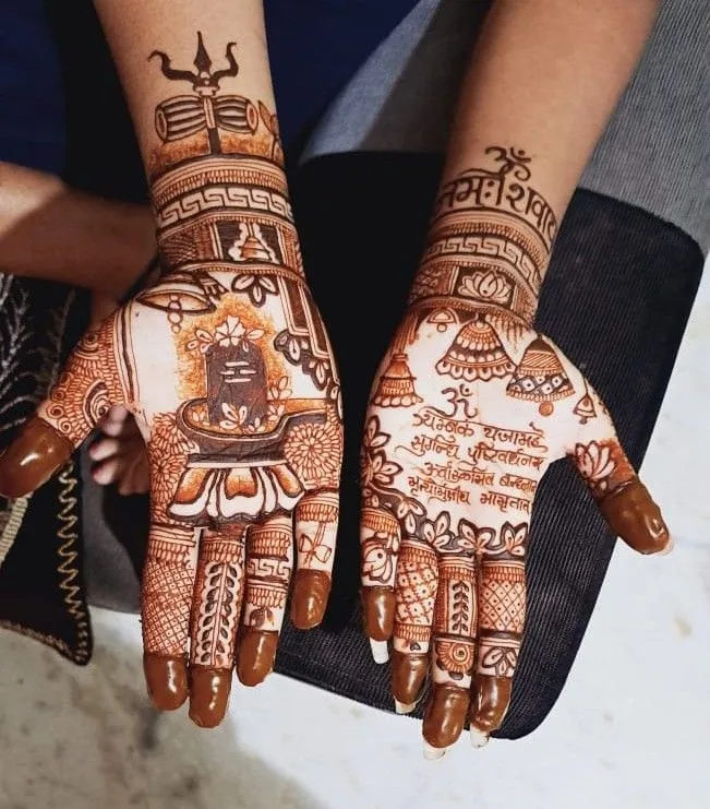 मेहँदी के इन डिज़ाइनों से हाथों पर शिव के प्रति समर्पण और आस्था की सुंदरता को दर्शाता है, जो बहुत ही मनमोहक और धार्मिक अनुभव देती है।
