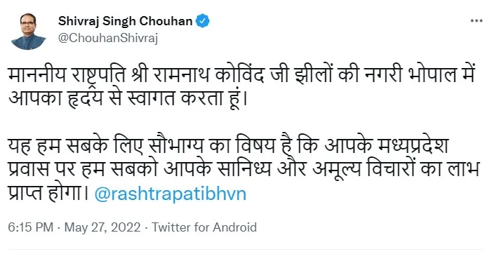 29 मई का कार्यक्रम-President on bhopal