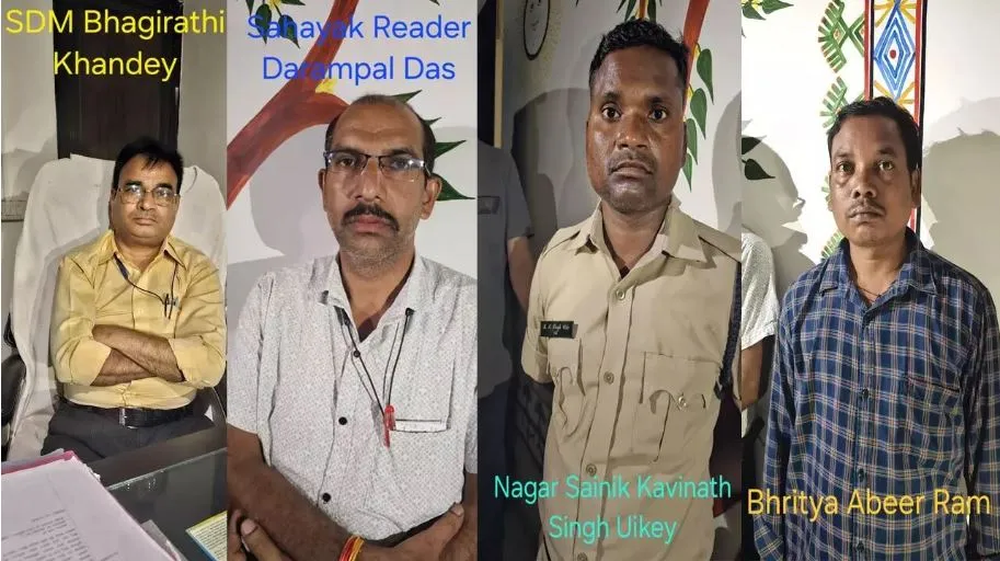 इस कार्रवाई से पूरे प्रशासनिक अमले में हड़कंप मच गया था. बताया जा रहा है कि SDM बीआर खांडे, नगर सैनिक कविनाथ सिंह, सहायक रीडर धरमपाल दास, भृत्य अबीर राम को गिरफ्तार किया गया. इन सभी पर आरोप है कि ये जमीन संबंधित मामले में 50 हजार की रिश्वत ले रहे थे.