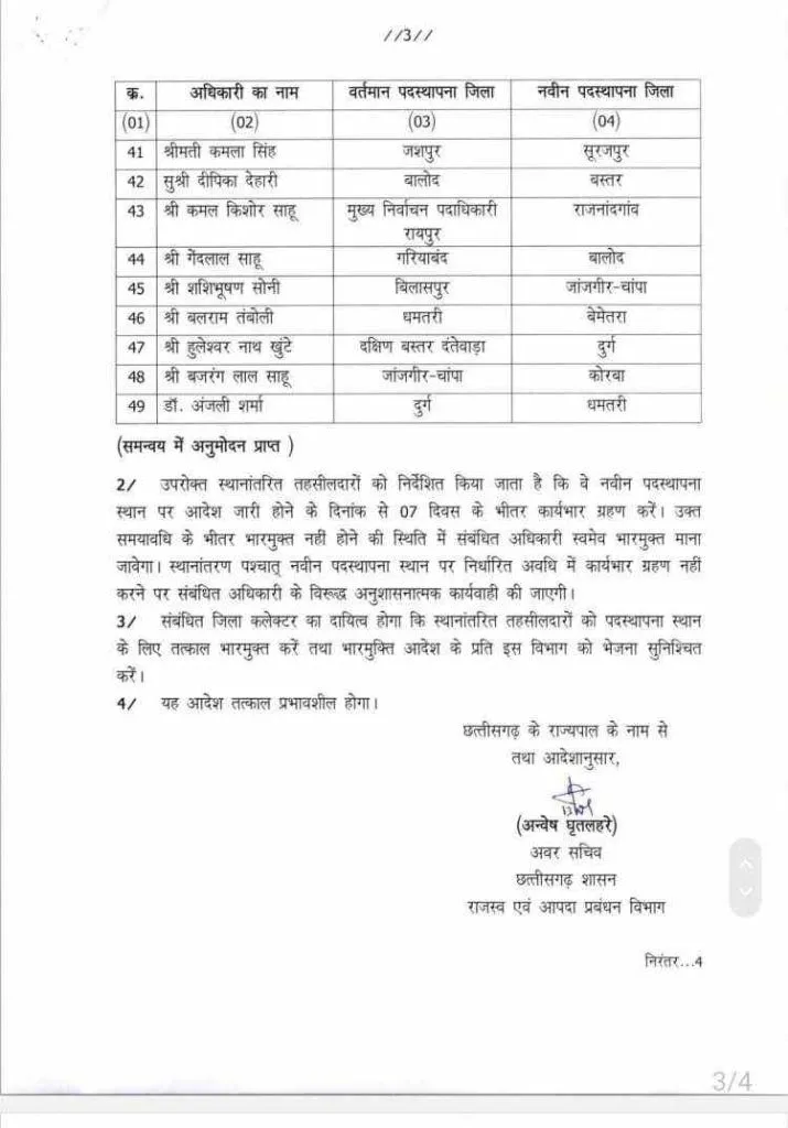 यह भी पढ़ें: CG Transfer News: छत्तीसगढ़ में बड़े पैमाने पर तहसीलदारों और नायब तहसीलदारों के तबादले, जानें कौन कहां पहुंचा?