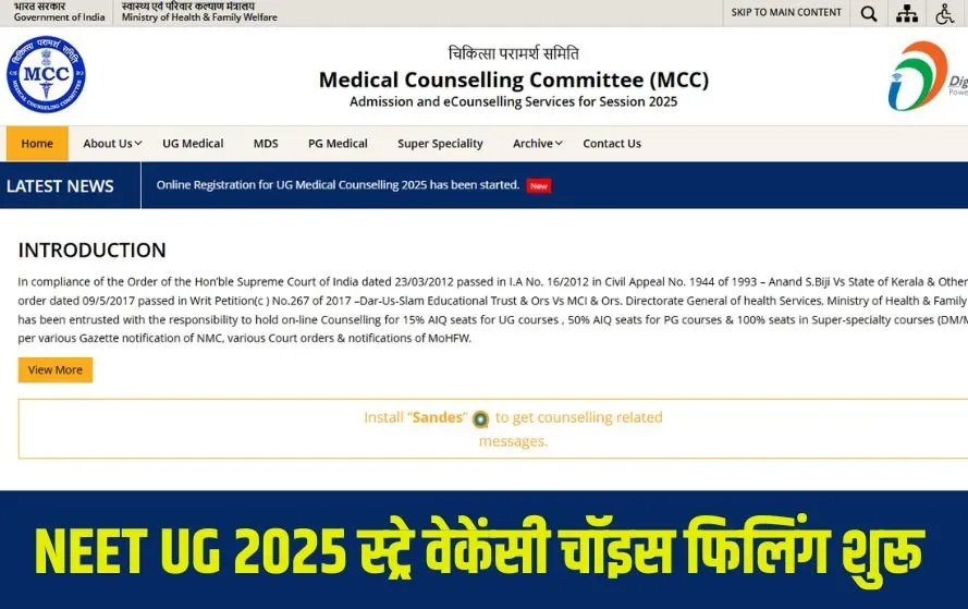NEET UG Counselling 2025: MCC ने स्ट्रे वेकेंसी राउंड की चॉइस फिलिंग शुरू, 1232 सीटों पर मिलेगा मौका