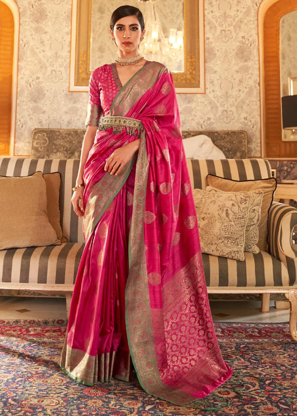 तसर सिल्क बनारसी साड़ी: तसर सिल्क बनारसी साड़ियाँ तसर सिल्क से बनाई जाती हैं, जो इन्सेक्ट रेशम से मिलती है। यह साड़ियाँ अपनी खास बनावट और नेचुरल रंगों के लिए जानी जाती हैं। इन पर अक्सर नेचुरल रंगों से बने डिजाइनों का इस्तेमाल किया जाता है।