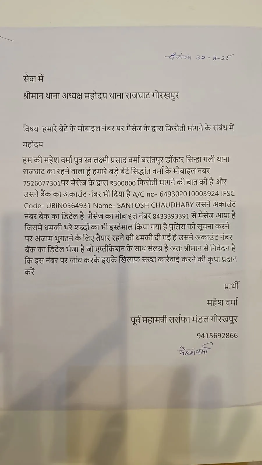 - मैसेज में 3 लाख रुपये की मांग की गई