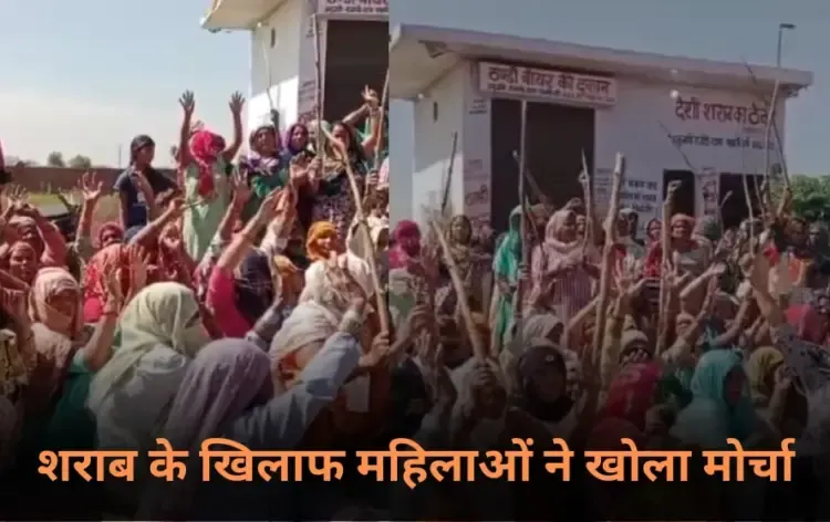 Hapur News: हापुड़ में महिलाओं ने शराब ठेके के खिलाफ किया जोरदार प्रदर्शन, डंडे लेकर उतरीं सड़क पर